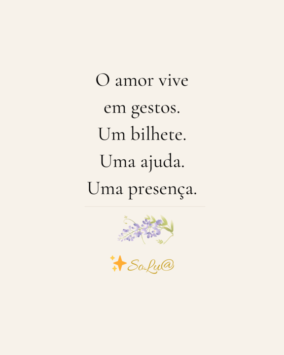 O amor não é só sentimento — é gesto. É atenção. É presença. Hoje, faz uma pequena surpresa em casa. Que seja um bilhete, uma ajuda, um “descansa que eu trato”. Amor é construir paz no quotidiano. Ação do dia: oferece um gesto de cuidado a alguém da tua casa. Pergunta: como se sente amor no teu lar? ✨ SoLu@ #Amor #Família #Cuidado