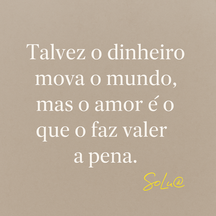 Li recentemente no Expresso uma frase que me fez parar: “Sentimentais e divulgadores de piedades gostam de dizer que é o amor que faz mover o mundo, mas não é verdade. É o dinheiro.” Confesso… doeu um bocadinho ler isto. Porque cresci — e acredito — que o amor é a força maior do universo. Mas será mesmo assim? É inegável: o dinheiro move economias, decisões, oportunidades. Pode abrir portas, realizar sonhos, proporcionar conforto. Mas o amor — o verdadeiro — é o (...)